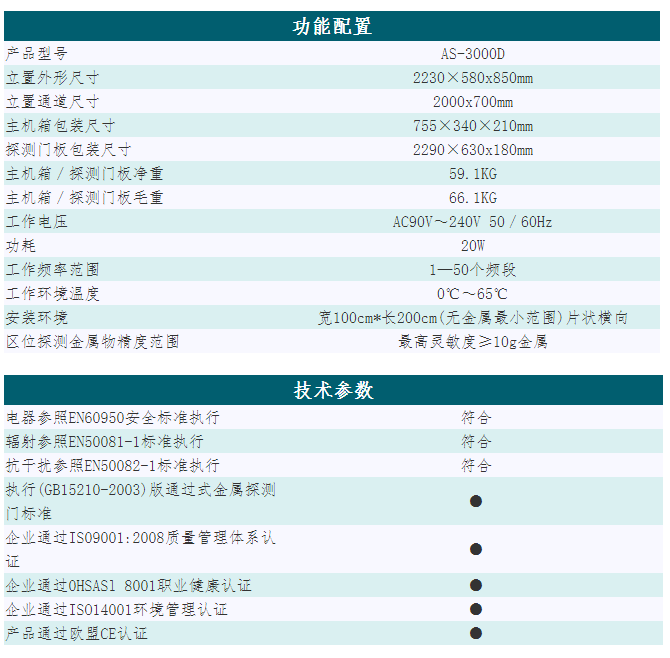 AS-3000D安檢門采用超大液晶顯示屏,專利技術的結構部件,防風、防潮、防塵設計,四鍵便捷操作, 多探頭、多區位、多發射接收,交互式探測技術。它采用超亮度貼片雙排區位報警指示燈,多角度直觀顯示違禁物品所藏匿的位置 具備鏈接外置設備功能,例如:三輥閘、翼閘、門禁、考勤機、以及需要相互控制登記的設備。