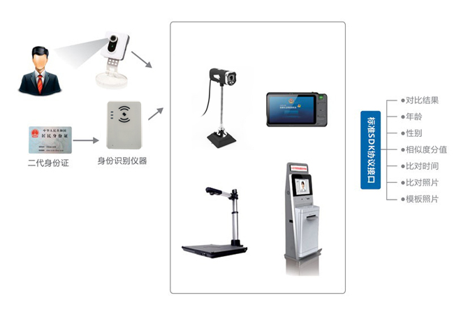 方便第三方集成,例如應用于自助通關、自助辦理金融業務、酒店自助入住等需要查驗辦理人身份時,自動的進行持證人與所持證件的身份一致性,并可打印憑條。